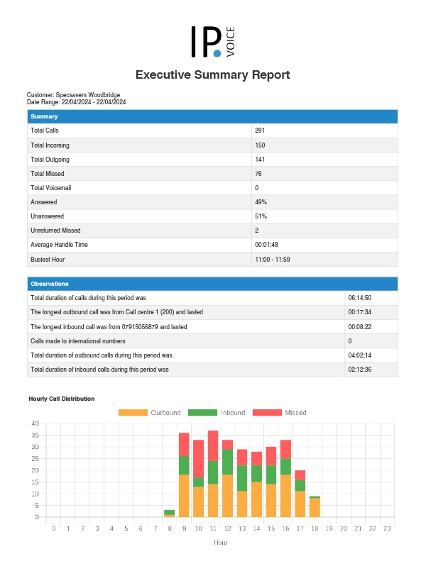 Snap back missed business opportunities with unreturned missed calls on your live wallboard, so you can telephone those customers back now.